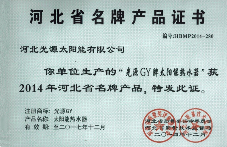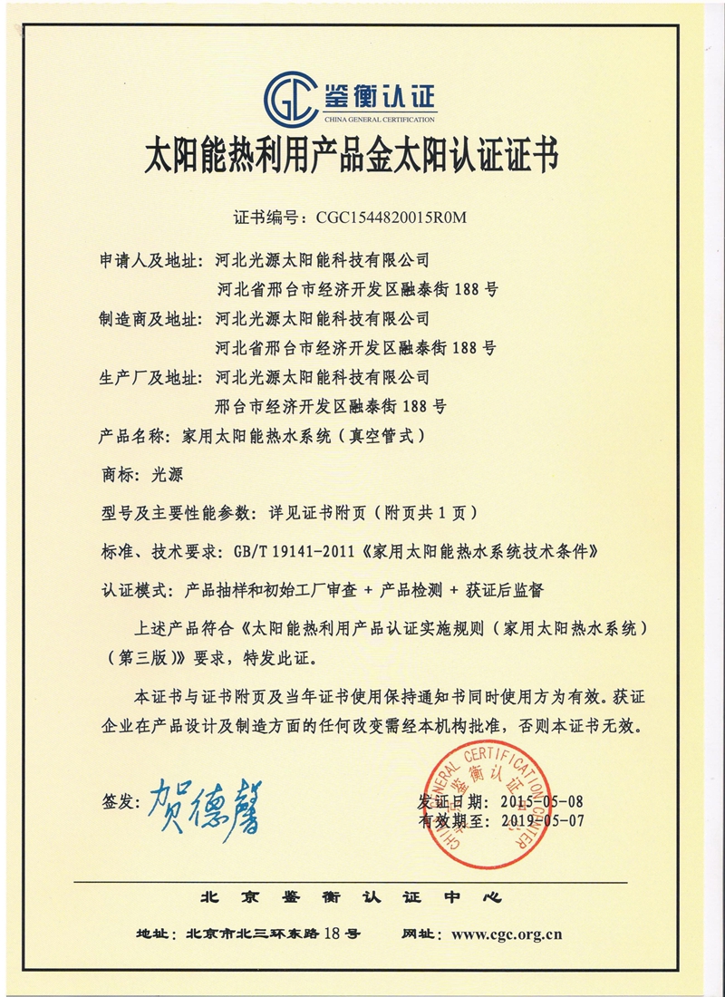 太陽(yáng)能熱利用產(chǎn)品金太陽(yáng)認(rèn)證證書